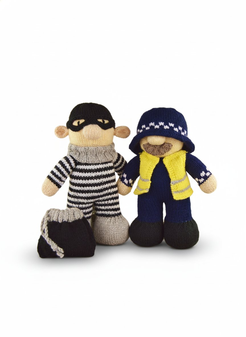 Caught in the act of being adorable! Knit Burglar Bill, a playful character soft toy perfect for storytelling and fun.