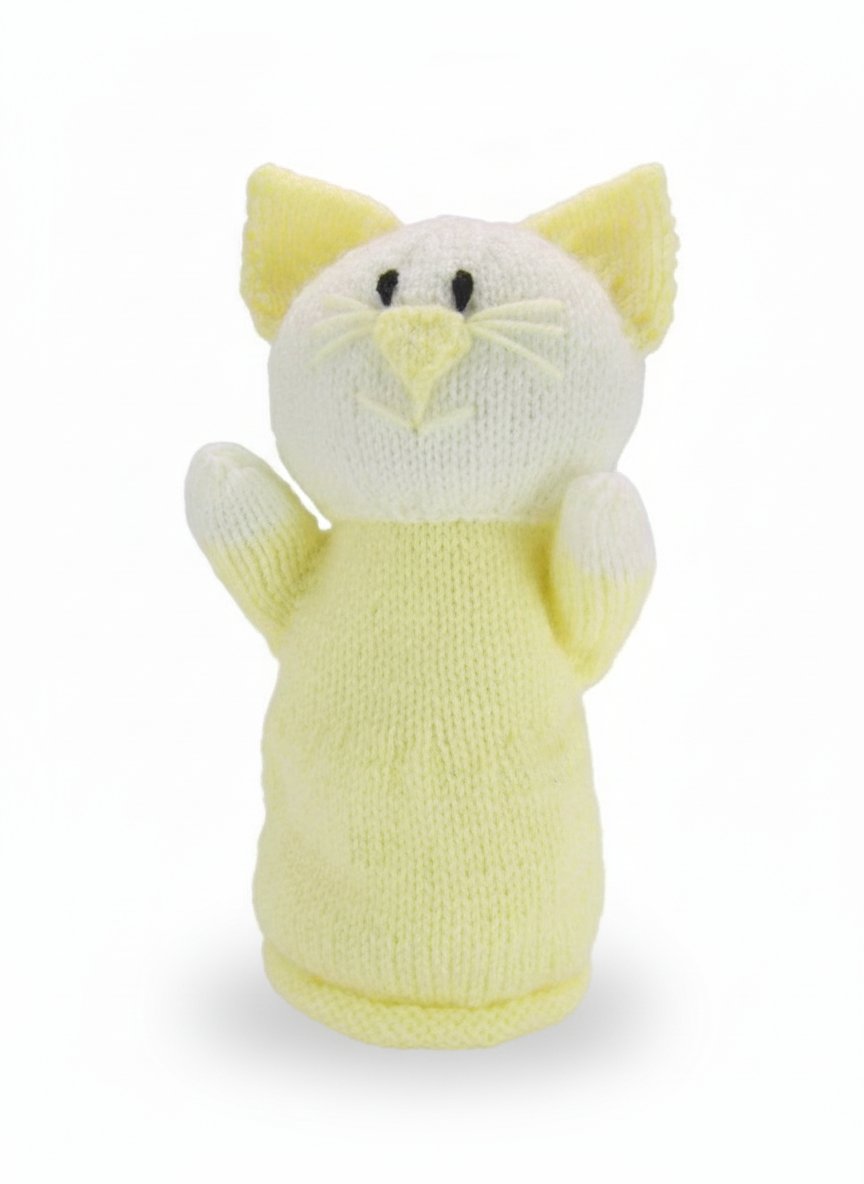 This is a knitting pattern to create an adorable knitted cat puppet. It’s a fun and engaging toy knitting pattern perfect for crafters looking to make a charming, handmade feline friend.