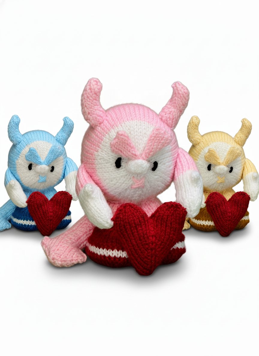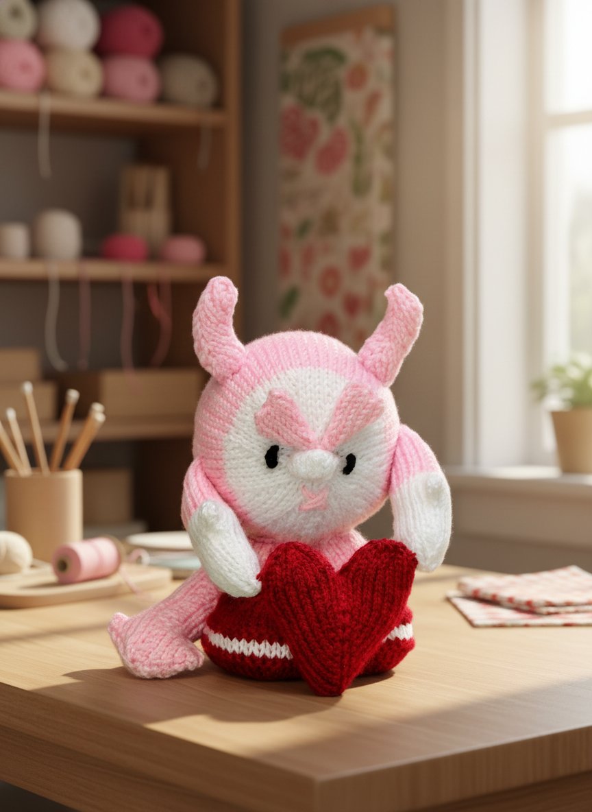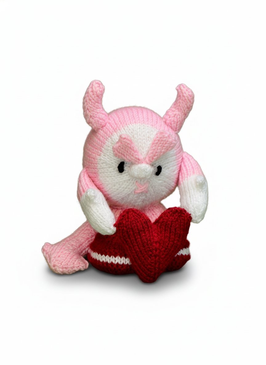 Cupid, step aside—this little pink devil is stealing hearts! A charming and easy-to-knit soft toy pattern for Valentine’s Day.