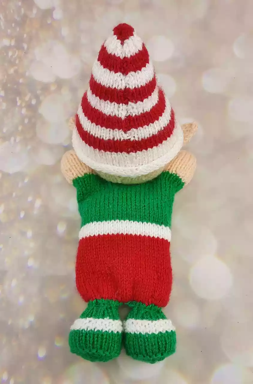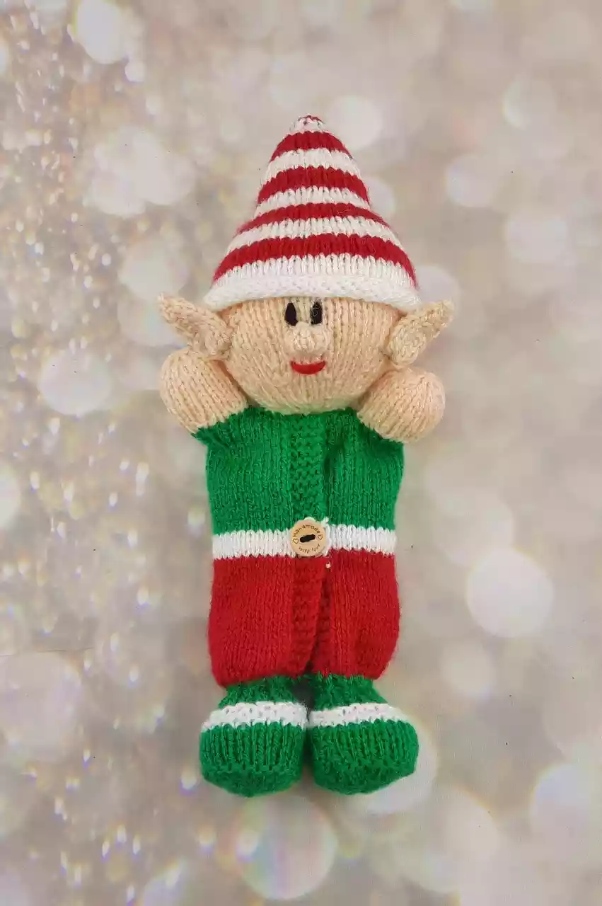Completed Dimensions – Double knitting. 10-15g red, flesh, green, white. Length of black for the eyes. Toy stuffing. Small button.